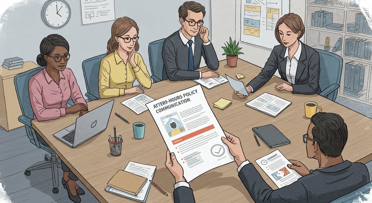 企業の時間外連絡ポリシーを示す文書のイラスト